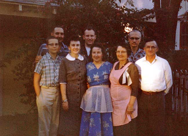 Below: Brent, Grant, Margo, Doyle (Grant’s & Margo’s eldest), Leola, Verna, Duane, Ken. Same venue, same poor lighting. |