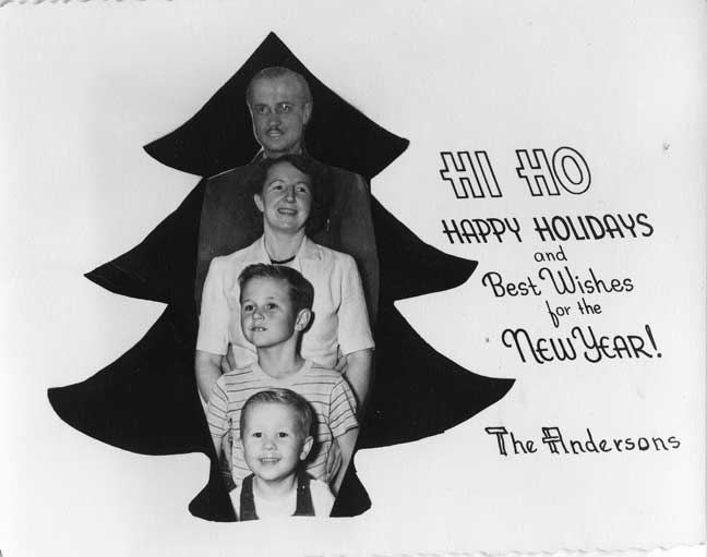 Seven years later, Duane depicted all four of us on his card, now including three-year-old Brent. He may have been a bit ahead of his time (WAY pre-Photoshop) with his special holiday effects.
