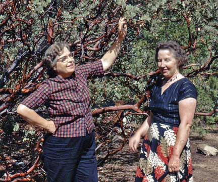Some nice things just keep on giving. Leola’s childhood chum, Myrle Roberts, is still her bosom friend here, decades later, under a manzanita bush.