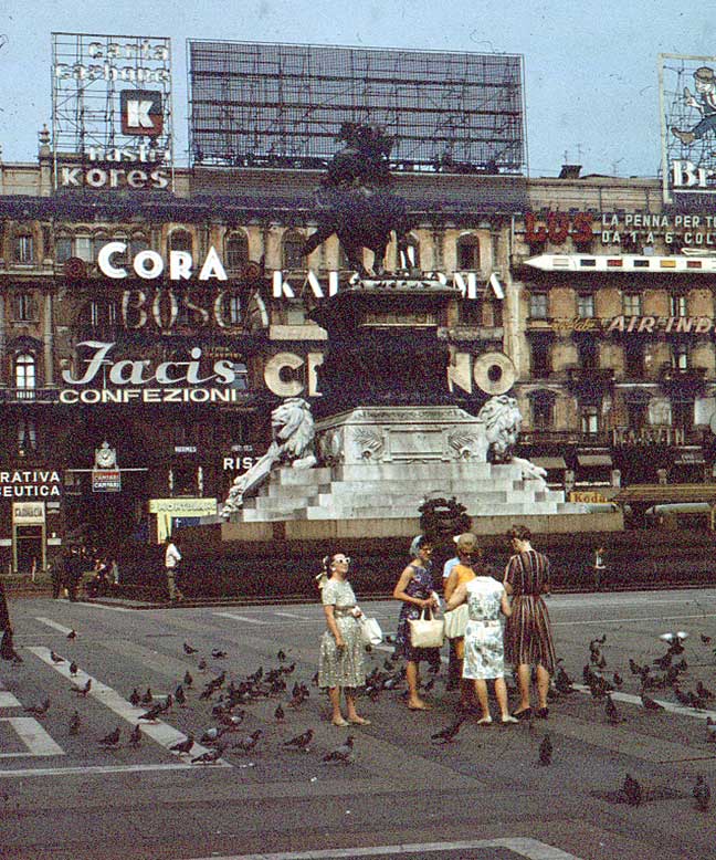 Here they are, somewhere picturesque in Italy. The girls with her seem somewhat turned inward; Leola’s drinking it all in.
