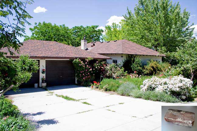 Providentially, we and this occasion arrived just as a solar panel project required the removal of a number of the old bricks. Betty gave each of us a brick as a souvenir: the one in the inset now resides in Kaysville. |