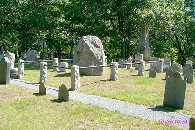 Pilgrim Elizabeth Tilley Howland, wife to Pilgrim John Howland, is buried next to the enclosure (at far left). She is our kin by marriage. |