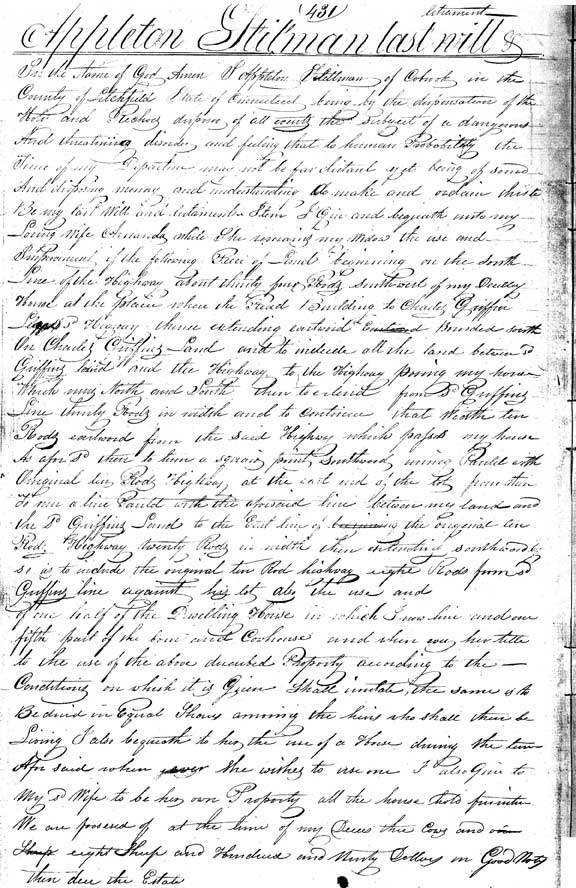 1Probate records v. 1-2 1779-1826, Connecticut Probate Court (Norfolk District); FHL US/CAN Film 5178; v. 1, pp 431-435. Had I thought to snap a few pictures of the Norfolk Town Hall, inside and out, I’d have bothered you with a lot more of the process, ’cause it makes a great story. How I drove past three times with my GPS yelling that we were there, before I believed it. How the only occupant was an elderly and infirm lady who allowed as how Appleton Stillman’s will might well be there, but it would be in the vault in the basement, and she didn’t handle stairs well. We took some time making friends, and she agreed to give it a try, rummaging in a drawer for a scrap of paper. Bearing, she said, the combination, which she’d never had reason to use. But that she’d heard seldom worked the first time… Aren’t you glad I’m showing restraint? Well, it did work. The first time. |