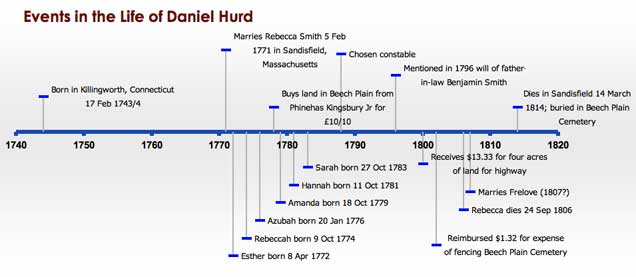 Our Hurds seem to have maintained a very low profile2 and lived a quiet life in Sandisfield. My researches when we visited there in the summer of 2009 revealed only the sparse timeline shown above.