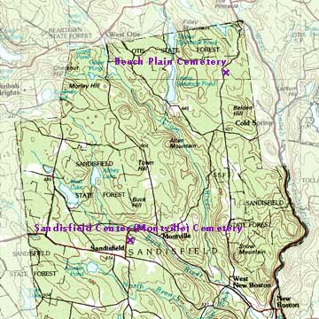 Berkshire County land records reveal that Grandpa Daniel purchased land in Beech Plain, in the northeast corner of Sandisfield. In the middle of the War, 4 September 1778, he paid ten pounds, ten shillings to Phinehas Kingsbury, Jr., for a lot whose size the deed1 doesn’t specify. The next entry2 in the book of deeds documents his purchase of another item from Jonathan Robbins of Wethersfield, Connecticut; I’m still looking into the location and extent of this lot. |