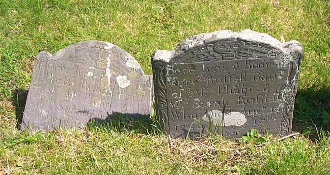 Since they died only two weeks apart—Phebe aged 11, and Mary aged 15—we suspect that they may have succumbed to the same contagion. Their stones appear to have been fashioned by the same hand. While smallpox outbreaks were recorded in 1730 and 1752, that plague doesn’t seem to have been active in the year that they died. There were plenty of diseases around, though. 1Lucius R. Paige, History of Cambridge, Massachusetts, 1630-1877 (Boston:H.O.Houghton and Company, 1877), pp. 128-9. |