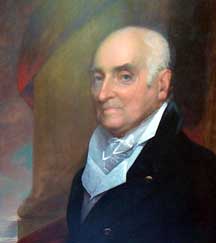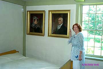 These portraits of Matthew Bridge and his wife, our cousin Abigail Russell, hang in the Buckman Tavern on Lexington Green, in the upstairs room where John Hancock left his incriminating trunk on April 18. |
