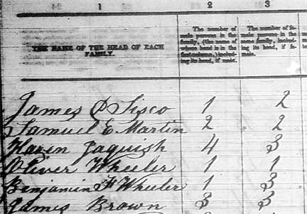 corner of the census sheet shows the names of Oliver Wheeler and Benjamin F Wheeler as heads of household.
