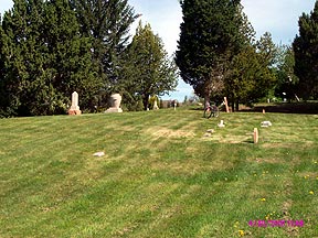 2002. You can’t see his gravestone in this shot, because he didn’t have one, then. The hillside was green and lovely, but only the records of the Salt Lake City Cemetery then indicated his precise resting place (Plat E, Block 13, Lot 12). I was scandalized. So were others, when I told them about it. |