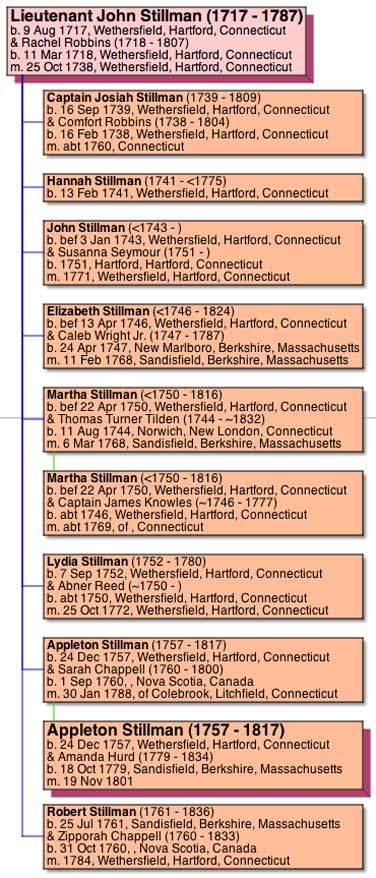 Our direct line of descent goes through the second marriage of 3G Grandpa Appleton Stillman.1 Grandma