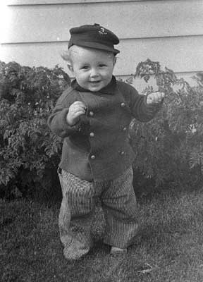 That looks like an anchor on the cap. That would make the baggy outdoor outfit something nautical, I suppose. My first thought ran more along the lines of The Littlest Bolshevik, but that would be far afield from Pappy’s lifelong politics. Can’t say I ever heard Mammy hold forth on the subject, but Pappy made sure those around him knew where he stood.