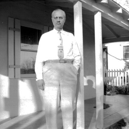 Here’s the lord of the manor, on the front porch, as seen by my Brownie, soon after the remodeling. |