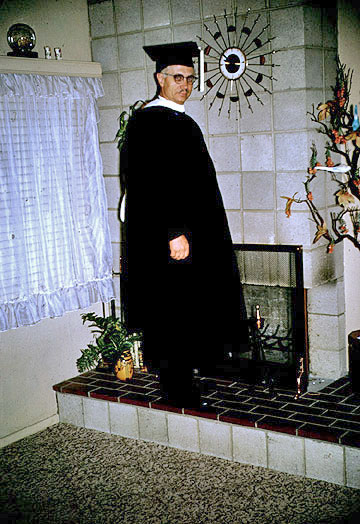 inasmuch as he didn’t himself complete any additional degrees after moving to California. His final academic credential was his master’s in German, from BYU (or maybe Wisconsin?).