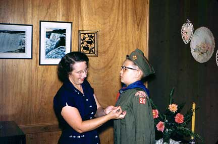 his parents on the subject. On an earlier occasion and on the same spot, Mammy pinned a Scout award on a seriously-dignified Brent. |