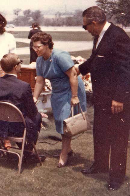 At left, old friends Jack Jolley and Ray Thatcher at our wedding reception. At right, the Jolleys (Valeer and Jack), at Mammy’s graveside. This is the best I’ve got, for now. |