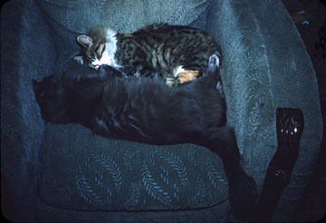 Here are Pinky and Blue Boy again, enjoying a cat-nap on a living-room overstuffed.