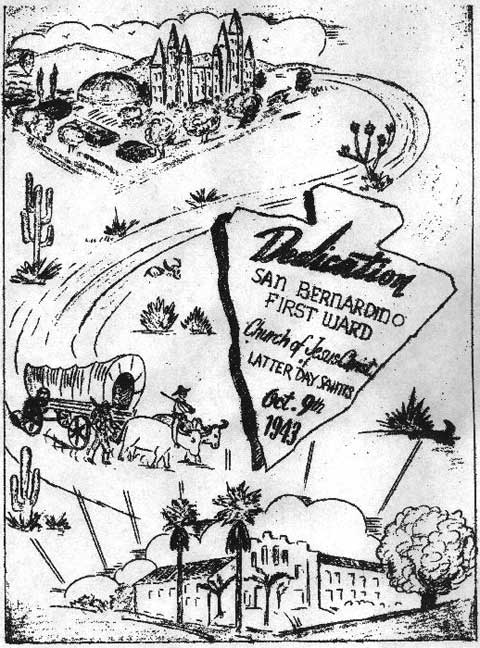 We arrived in San Bernardino just three years too late to take part in the dedication of the Ninth Street chapel. Here’s the cover page of the program1 they passed out on 9 October 1943. |
