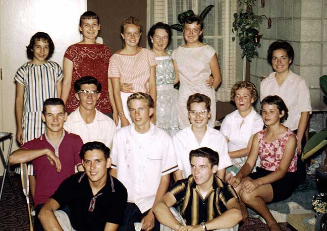 Here’s Mammy, in our living room, surrounded by some of her beloved Third Ward charges for 1959, the year after I completed my fourth (postgraduate) year of Seminary and left San Bernardino. I’m morally certain that we have group shots of the Seminary kids from my senior year, but I haven’t encountered them yet. |