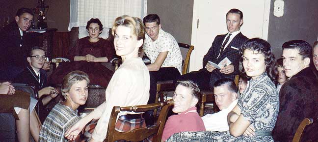 Same venue, somewhat later group of Seminary kids. But soon enough after the previous one to include Brent, Mike Lambert and (probably) Linda Meyer as the only apparent overlaps. That may be Mammy, partially, at far right. |