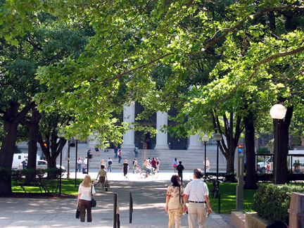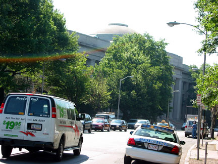 | This isn’t the Great Dome but the smaller dome over MIT’s main entrance at 77 Mass Ave, here seen looking down Mass Ave toward the river. |