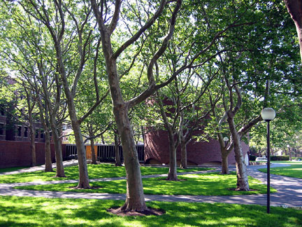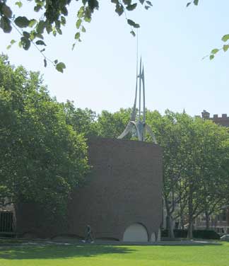 Eastward from Kresge, looking toward Mass Ave behind the trees and buildings, also a recent addition when I arrived, this is the MIT Chapel. |