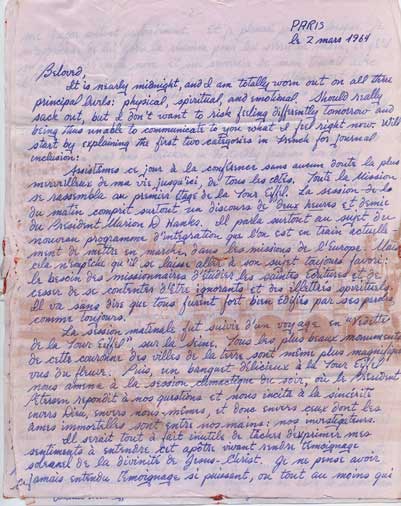 I’ve translated that into these pages at its proper chronological point. It includes my account of the marvelous all-Mission conference that we held on the Eiffel Tower, shortly before my release. I hope to find, eventually, what I wrote about the prelude to this episode, when the entire Mission went to the Temple in Switzerland. For the moment, this record is silent on the months of February, March and April. Then… |