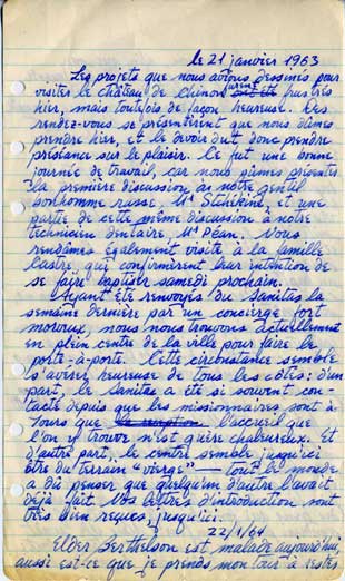The first of the fifteen handwritten journal pages that turned up in November, 2010, in an isolated letter. It may help you to appreciate (I surely do!) Valerie’s loving labor of transcription.
