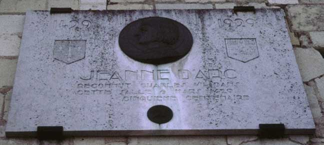 “1429 1929 JOAN OF ARC RECOGNIZED CHARLES VII IN THIS ROOM 6 MARCH 1429 FIFTH CENTENARY”