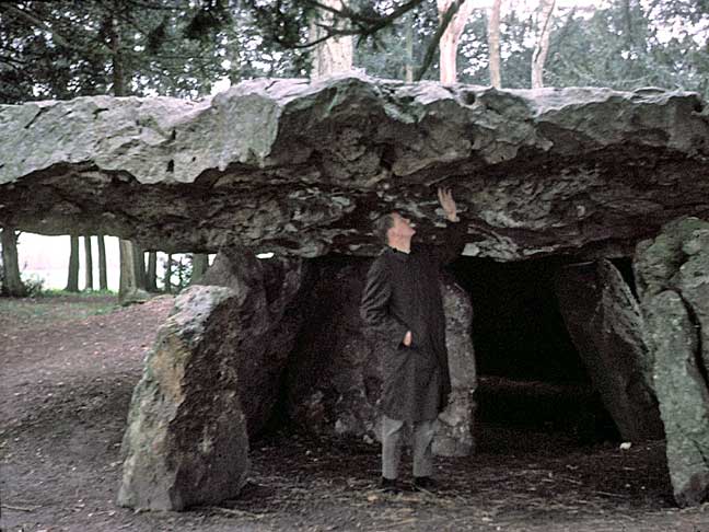 At first blush, my companion would seem to be braving a significant hazard. But then one realizes that these giant stones (megaliths) haven’t budged from their places in a very long time. This is a dolmen—a megalithic structure left here by an earlier resident civilization. Happens to be located right in downtown Tours, where we’d walk past it while tracting and shopping. I can’t vouch for the absolute historicity of this tale, but I can tell you that I asked a presumably-knowledgeable local citizen (1) who built the dolmen, and (2) for what purpose. He replied, and I have no reason to doubt his word, that these were very old stones, and that mine was a very old question. They say that Julius Caesar asked it, a couple of thousand years ago, when he passed through Tours. And that nobody around had any idea of the answer… |