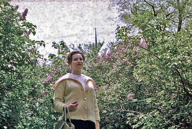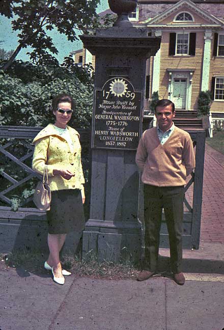 When visitors came, we tended to turn into visitors, ourselves. Indeed, I fear, we (well, at least I) became unshuttuppable tourguides. The famous house behind Valerie and Beetle, built by Major John Vassall in 1759, was later Washington’s headquarters in 1775-76, then the home of Governor Elbridge Gerry, and even later that of Henry Wadsworth Longfellow. A favorite stop, of course, inasmuch as it sat just across the street from the Cambridge Chapel on Longfellow Park. Below, same occasion; same lovely lady.2 Better view of some of Mr Longfellow’s rather famous lilacs.3 |