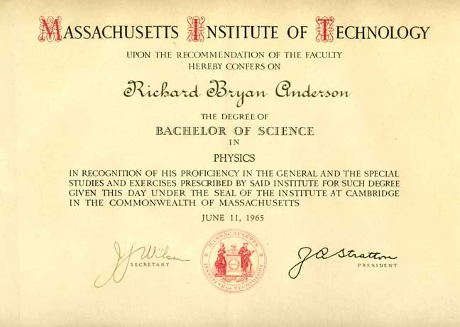 Bottom line: they kindly awarded my degree. As President of MIT, Big Jay Stratton (Laurie’s dad) signed the certificate.
