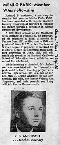 Not much to report from this generally-successful episode. Toward the end of the term, the district offered me a job as the first physics teacher at a rather ostentatious1 new high school up on Skyline Drive. They, too, figured they would implement “HP2”. It was an attractive idea, and Valerie had gotten used to the notion that she’d married a high-school teacher. But by then we’d accepted another offer, this one from Harvard’s Ed.D. program in Science Education, to come work on the new curriculum, back in Cambridge.
