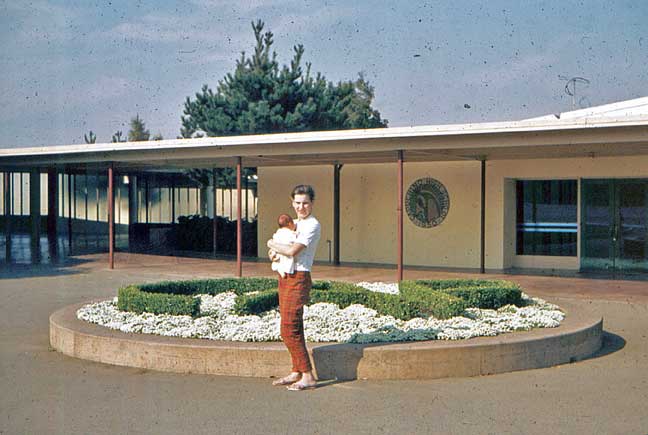 My loved ones’ visitation to Capuchino (their only one, as far as I recall) came fairly early in Rick’s life. Here he is with Valerie, out in front and in the hallway. Same visit as in this shot. |