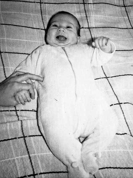 This probably wasn’t Rick’s first smile, but it may be the first one we caught on film. Note the digital stimulation. |