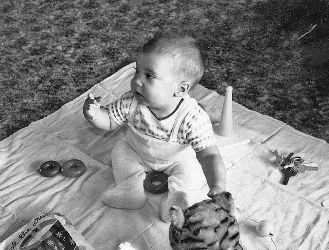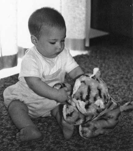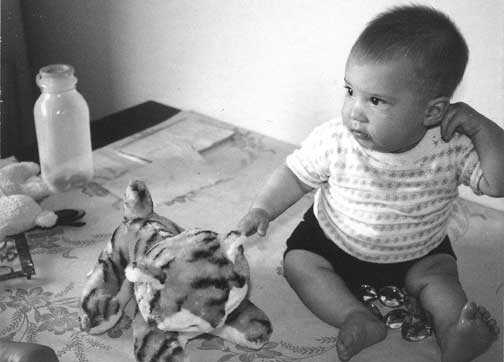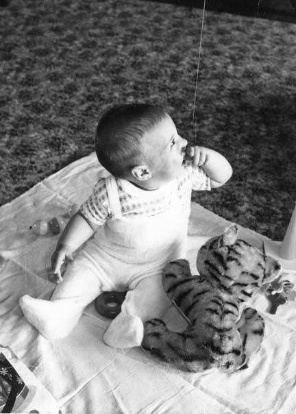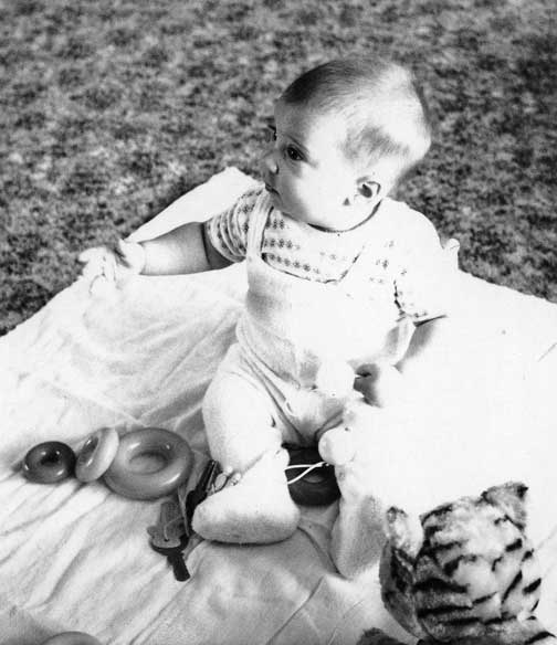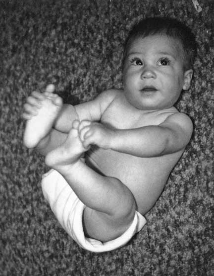 In due time, Rick did learn to sit without support. That skill seemed to content him: unlike many kids his age, whether seated or on his back, he was pretty much content to stay put. |