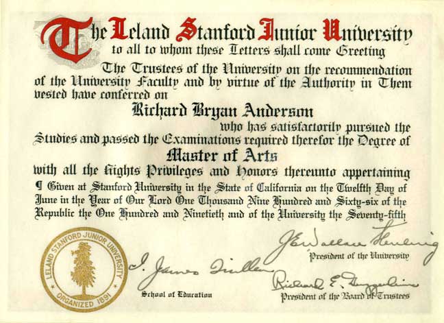 After a very energetic twelve months, The Leland Stanford Junior1 University awarded me this diploma, and the State of California followed it with a credential permitting me to teach in the State’s secondary schools and junior colleges.