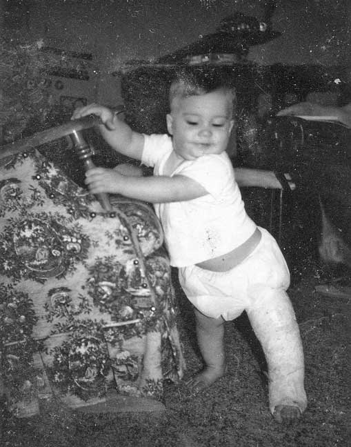 No, it’s true: our Rick never did crawl. Maybe if we hadn’t got him the walker…who knows? But he went straight from sitting to walking. Now, I’d been taking all these child development courses, in which “experts” opined about the rôles of various infantile behaviors in the process. So, while we were staying with the folks in San Bernardino, I said to Rick one day: “Son, your mother and I are concerned for your welfare. The books say it’s by crawling that you develop the lateral eye-motions so important to reading. Now, son, as an Anderson, you just can’t grow up illiterate. So, Rick dear, it’s time for you to crawl. Crawl, Rick!” So he giggled and trotted across the room. I tried again: “Rick, I’m serious about this. Walking and trotting are well and good. In due time, as Grandpappy says. But right now you’ve got to log some crawling time. So, crawl!” So he giggled and trotted across the room. “Son,” said I, “I’ll give you one more chance: crawl, or I’ll break your leg.” So he giggled and trotted across the room. So I broke his leg. In two places. |