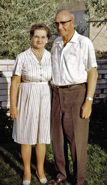 In Rexburg, Idaho, we stopped to visit two sisters of Grandpa Anderson. On her porch, we see Aunt Olive Webster. Aunt Leota Packer stands with her husband Clyde. Olive (1888-1975) was the fourth of Joseph Emmanuel and Diantha Christiana Thomson Anderson’s ten children; Leota (1901-1984) was ninth. Grandpa was fifth.