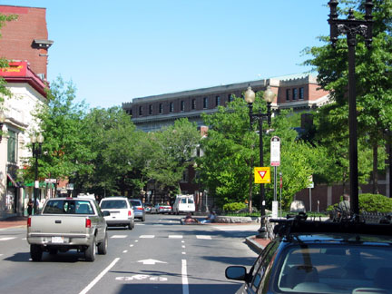 Heading up Mass Ave, by bicycle, toward Widener Library |