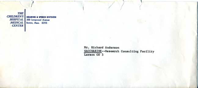 | Oops! I take it back. Fellow grad-student and consulting client Pat Looney did send this kind thank-you note explicitly to “SACCHARINE.” |