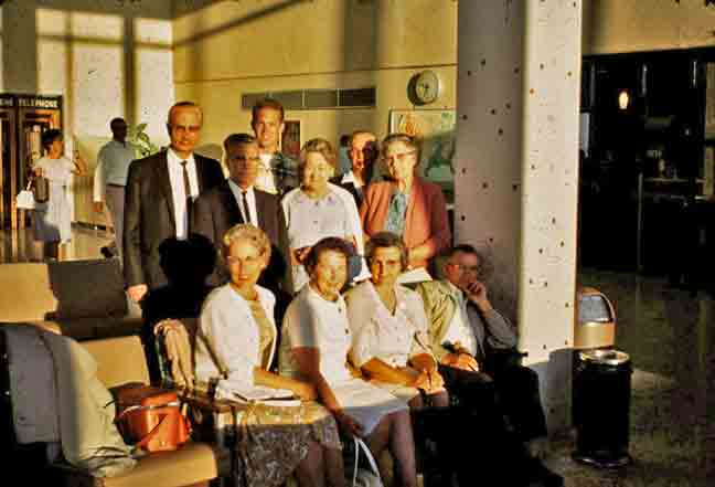 A bunch of loved ones came to the Salt Lake airport to see them off: Seated: Ruth Dunaway; 1 Leola; Verna and Ken Carter; Standing: Duane ; Jim Seely; David Anderson; Grace Seely; Grandpa Francis; Grandma Eloese. 1Jim Dunaway took these; another that Pappy apparently took includes Jim. |