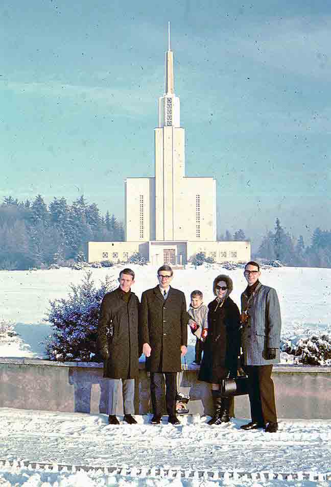 The first European Temple competes with other sources of whiteness, in the background, as our party of wandering missionary types poses in wintry sunshine. Brent will, I’m sure, put names to his companions’ faces.