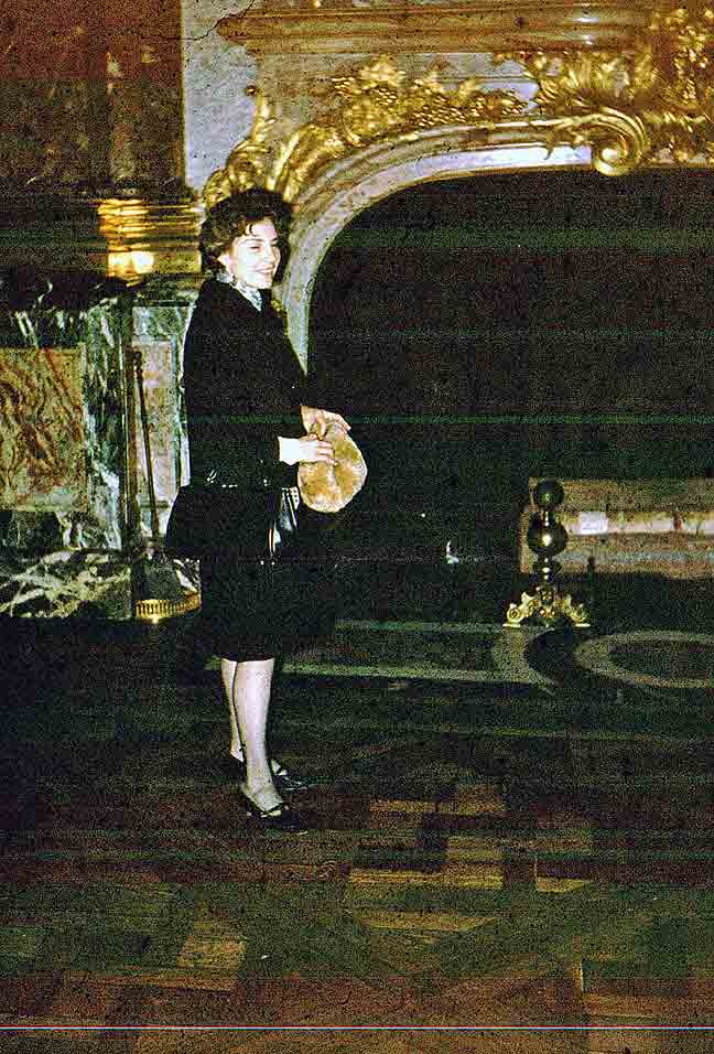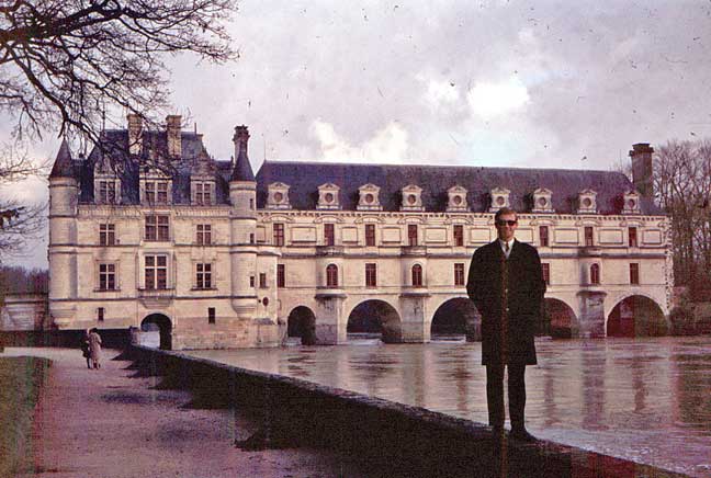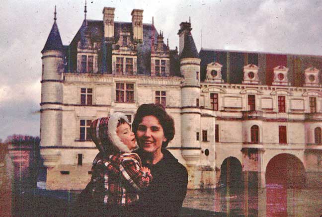 Chenonceaux is gorgeous inside: a splendid setting for Valerie’s loveliness. Even more beauty outside, including more of my darling, of our son, and of my baby bro’. Sorry that these old slides have deteriorated so badly over the intervening decades; hope the digital versions will keep better. |