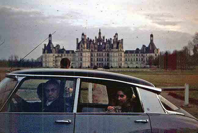 | Even with all their responsibilities, the folks found time to take us to the Loire Valley. Photos of le Château de Chambord sell for cent balles la douzaine; I confess that I took this one. Wretched as it is, from a photographic point of view, it’s still precious to us as the only image that remains of our family group in the Mission’s Citroën DS-21, in which our lives would turn upside down, only six months later. |