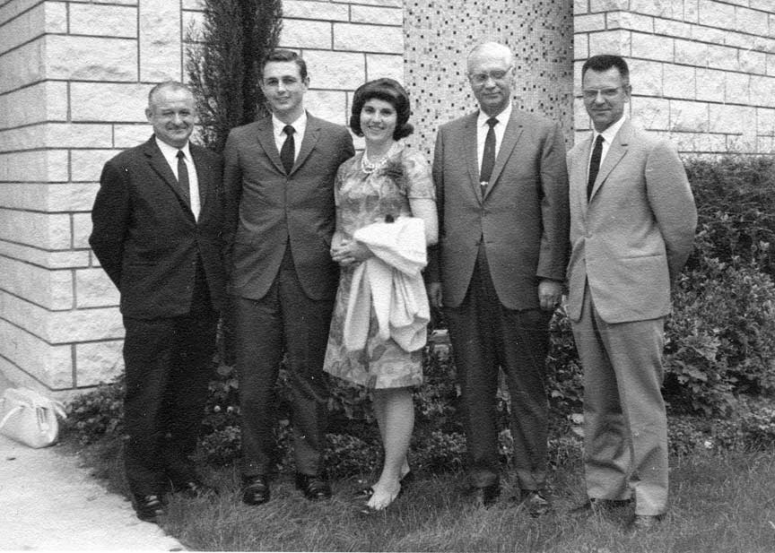 I’ve often opined that those dear French people would have followed Pappy over a cliff: they harbored no doubt at all about his loving commitment to them and to the Gospel. Here's the official 1968 Mission Presidency Christmas Card photo. Pappy and I flank Valerie. Wish you could have known his counselors, Ernest Defaye (left, an old friend from earlier days in Le Mans) and Robert Chollet (right, of Paris). Marvelous yokefellows. |