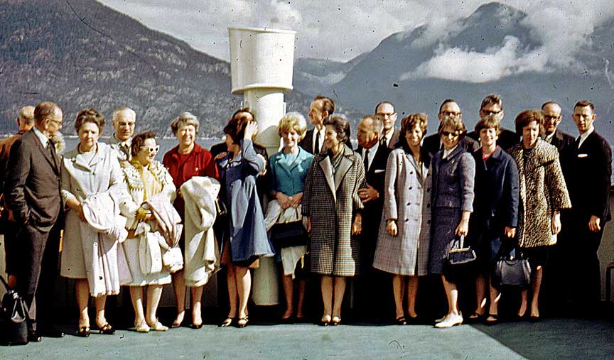 At right, they’re gathered at Keukenhof, near The Hague. Below, on the deck of a ship in Norway. |