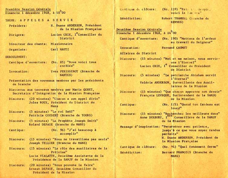 You’ll note that Pappy assigned her the rôle of “Supervisor of Mission Auxiliaries.”—an interesting title that would soon no longer make sense. She told the afternoon general session of the Le Mans District Conference in December about Father Abraham’s example of service and obedience: |