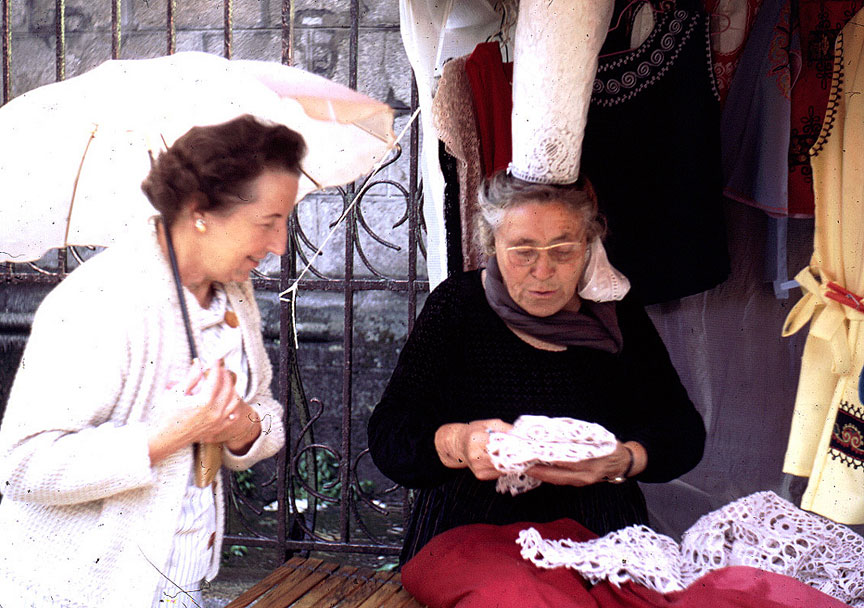 | I mentioned it earlier, but it bears repeating: Mammy did love her dentelle bretonne. These Celtic-featured, charmingly-coiffed ladies sold it on the streets of Concarneau, a smaller neighbor of Quimper, the ancient capital of Brittany. |