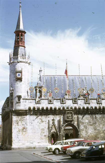 | Above, another shot from (perhaps the same) high vantage point, showing the typical Southern red-tile roofs of the city of La Rochelle. Below, the Hôtel de Ville (City Hall). |