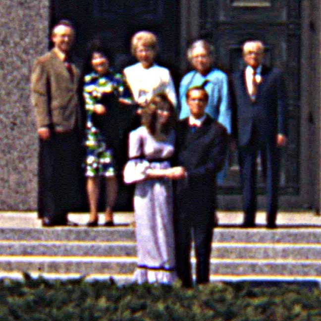Dave and Marta on their wedding day, at the Los Angeles Temple, with Jim Dunaway, Norma, Ruth, Grandma and Grandpa Anderson.